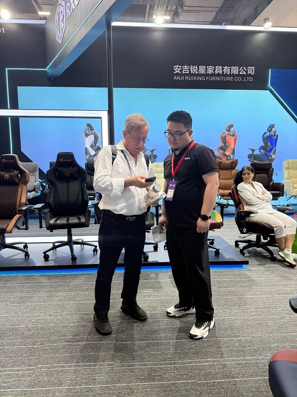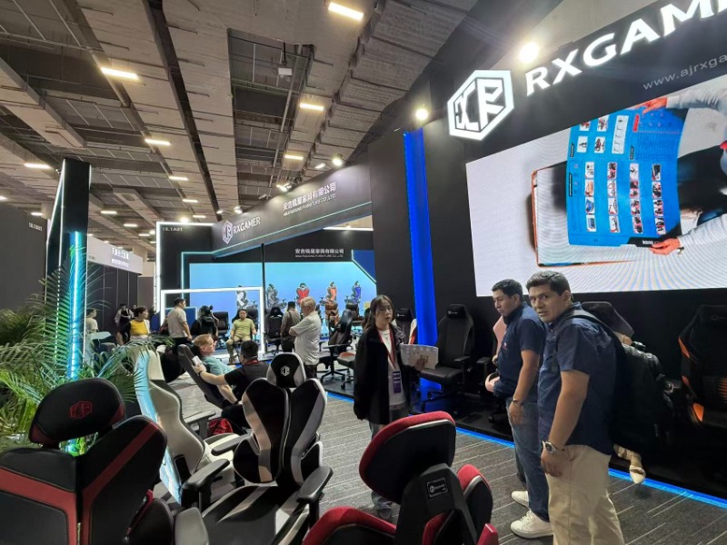 Under utställningen lyfte Anji Ruixing Furniture fram sina egendesignade och egenutvecklade spelstolar, vilket markerar en betydande milstolpe i företagets innovationsresa. Bland de många framstående styckena var debuten av RX-K7 , RX-K8 , och RX-6301PRO serie spelstolar. Dessa stolar utvecklades exklusivt internt, med skräddarsydda formar designade av vårt expertteam för att skapa unika och ergonomiskt optimerade former som möter de höga kraven från spelare. Designspråket för dessa modeller återspeglar vårt engagemang för att blanda funktionalitet med estetik, och erbjuda en bekväm och uppslukande spelupplevelse.