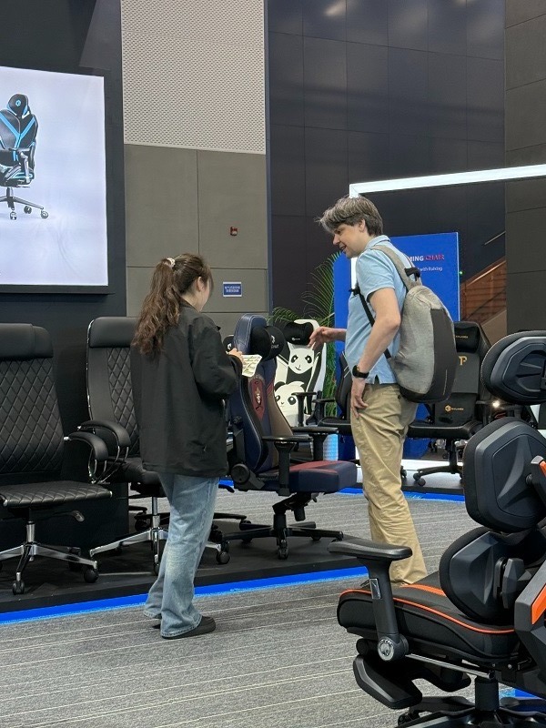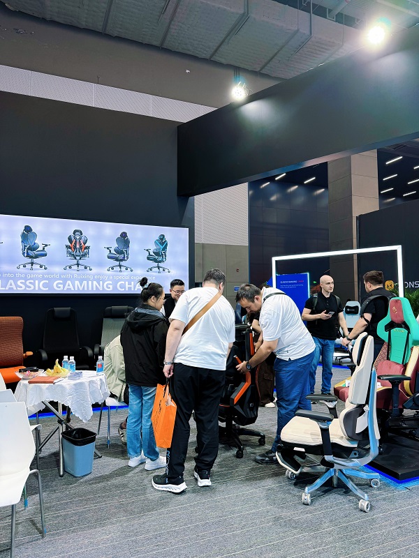 Båsbesökarna imponerades av den stilfulla och moderna designen och utsökta hantverket hos dessa nya produkter. Många besökare upplevde personligen våra nylanserade spelstolar och gav dem mycket beröm och positiv feedback.