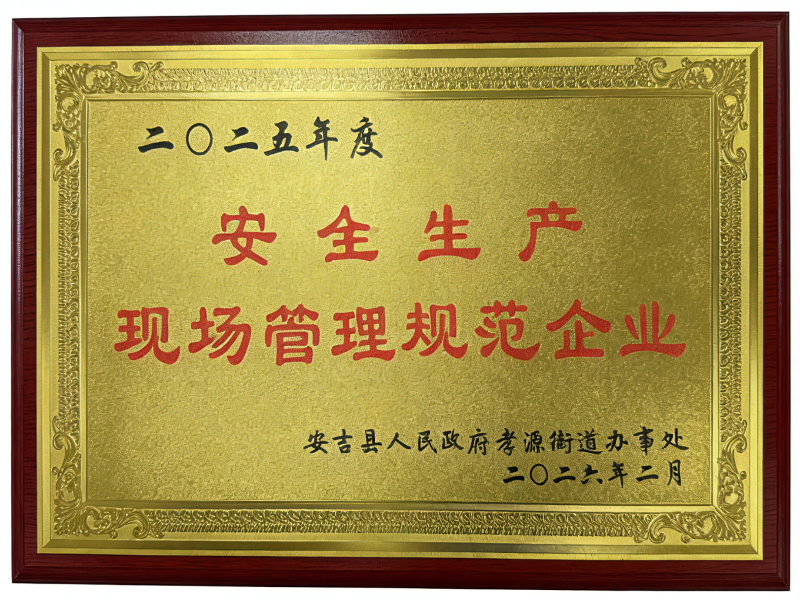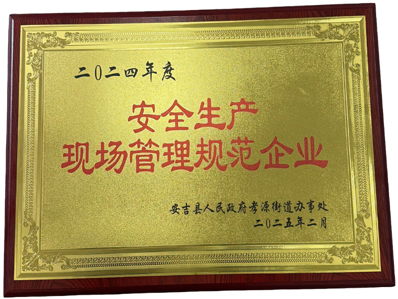 Vi är glada över att meddela det Anji Ruixing Furniture Co., Ltd. har återigen hedrats med det prestigefyllda 2025 Safety Production Site Management Standardization Award . Detta är andra året i rad som vårt företag har fått detta betydande erkännande, ett bevis på vårt orubbliga engagemang för säkerhet på arbetsplatsen.